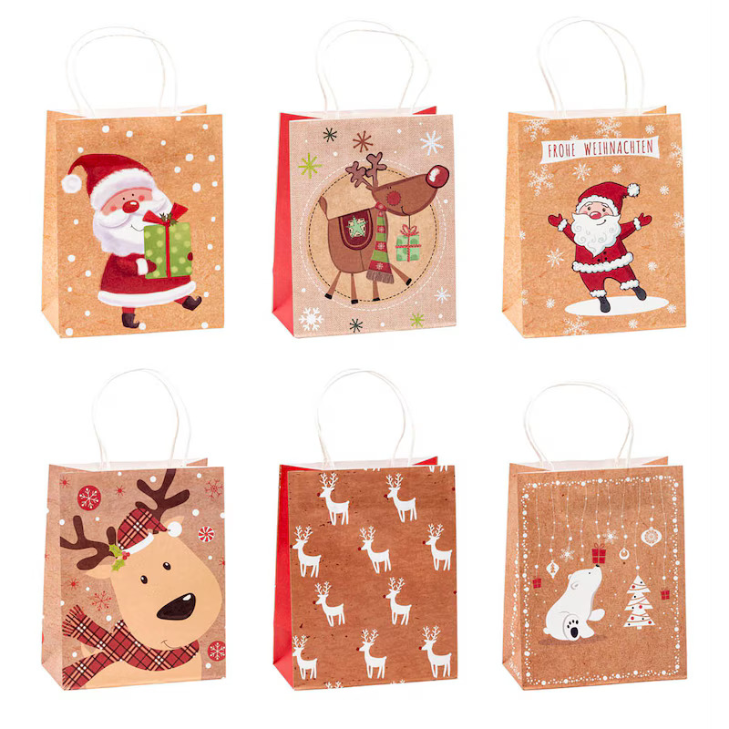 12 TSI Kraftpapier-Geschenktaschen zum Thema Weihnachten