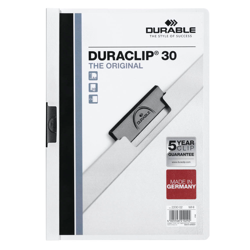 Der DURABLE Klemmhefter DURACLIP ist die ideale Lösung für professionelles Präsentieren ohne lästiges Lochen. Die transparente Vorderseite aus Kunststoff ermöglicht es, mit einem eingelegten Deckblatt direkt auf den Inhalt hinzuweisen.