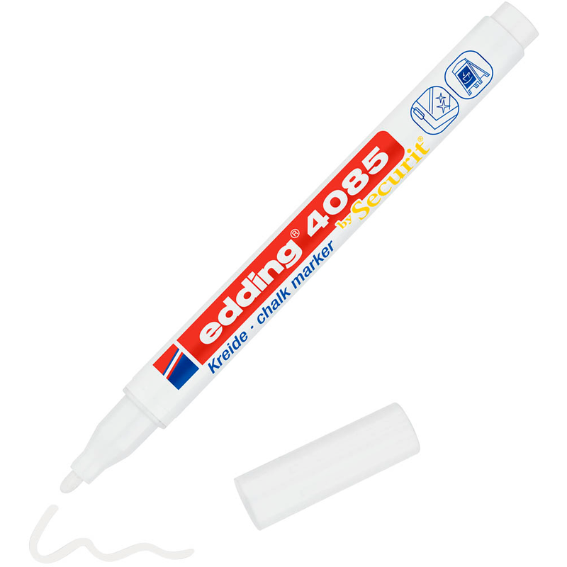 Der edding 4085 Kreidemarker weiß erzeugt ein mattes, aber kraftvolles Schriftbild und lässt sich ganz einfach wieder von glatten Oberflächen abwischen. Die hochdeckende Tinte bietet ein kreideähnliches Aussehen, das sehr stylisch wirkt.