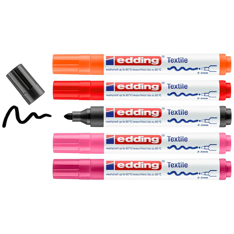 Bestellen Sie jetzt die edding 4500 warm Textilmarker im 5er-Set und gestalten Sie Ihre Textilien individuell!
