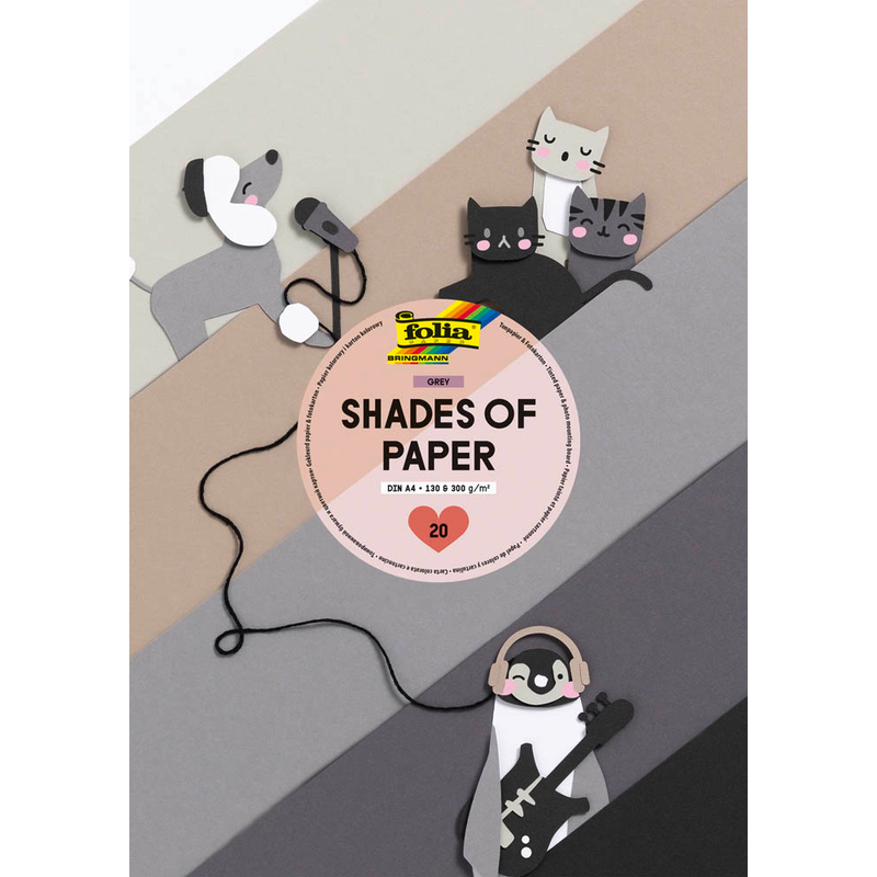 Mit dem folia Tonpapier Shades of Paper - grey macht Basteln Spaß. Die Blätter können geschnitten, bemalt, beschrieben, gefaltet oder beklebt werden.
