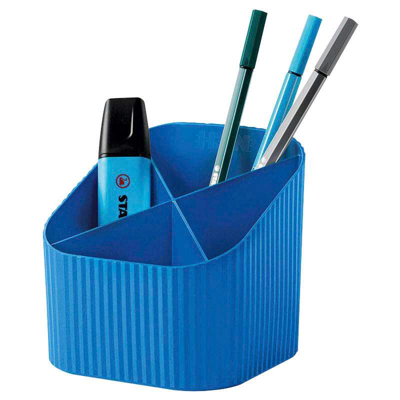 Schaffen Sie sich Platz auf Ihrem Schreibtisch. Ob Stifte, Büroklammern oder Schere – mit dem HAN Re-X-LOOP Stiftehalter in blau haben Sie immer schnellen Zugriff auf Ihre Schreib- und Arbeitsutensilien. Zudem besteht der Kunststoff des Halters zu 100% aus Recycling-Material.