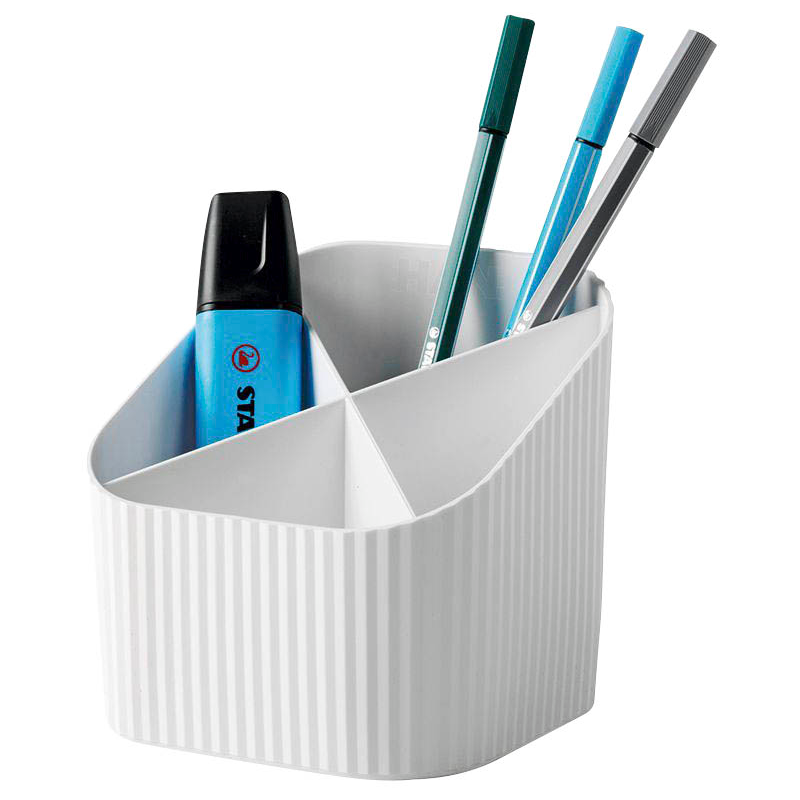 Schaffen Sie sich Platz auf Ihrem Schreibtisch. Ob Stifte, Büroklammern oder Schere – mit dem HAN Re-X-LOOP Stiftehalter in weiß haben Sie immer schnellen Zugriff auf Ihre Schreib- und Arbeitsutensilien. Zudem besteht der Kunststoff des Halters zu 100% aus Recycling-Material.
