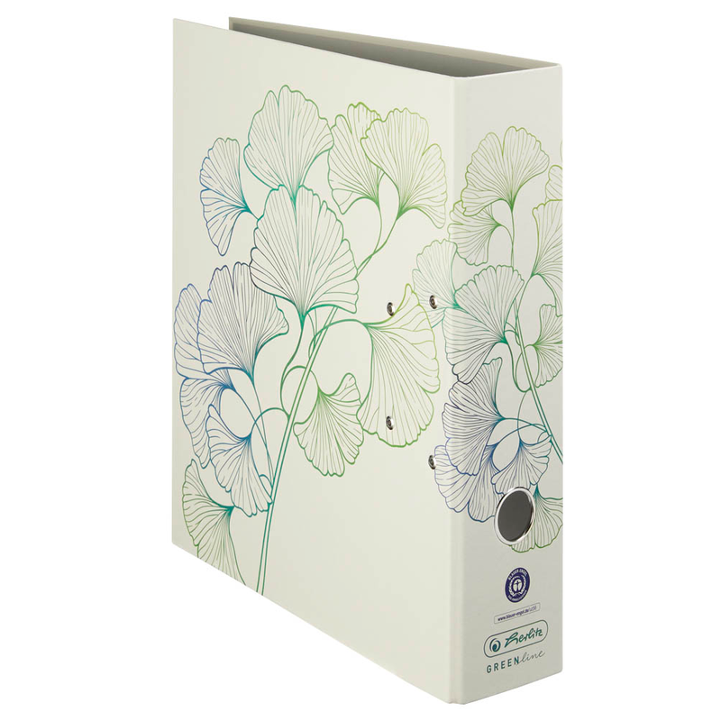 Durch das trendige Gingko-Motiv sticht der herlitz maX.file GREENline Motivordner 8,0 cm DIN A4 sofort ins Auge und ist damit mehr als nur ein sicherer Ablageort für Ihre wichtigen Unterlagen.