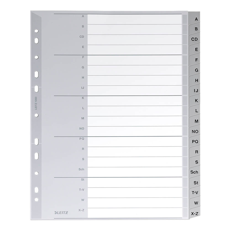 Ordnung in Ihren Ordnern - dieses LEITZ Buchstaben-Register strukturiert Ihre Ablage. Dabei lenkt das schlichte Design die Aufmerksamkeit voll und ganz auf den Inhalt Ihres Aktenordners.