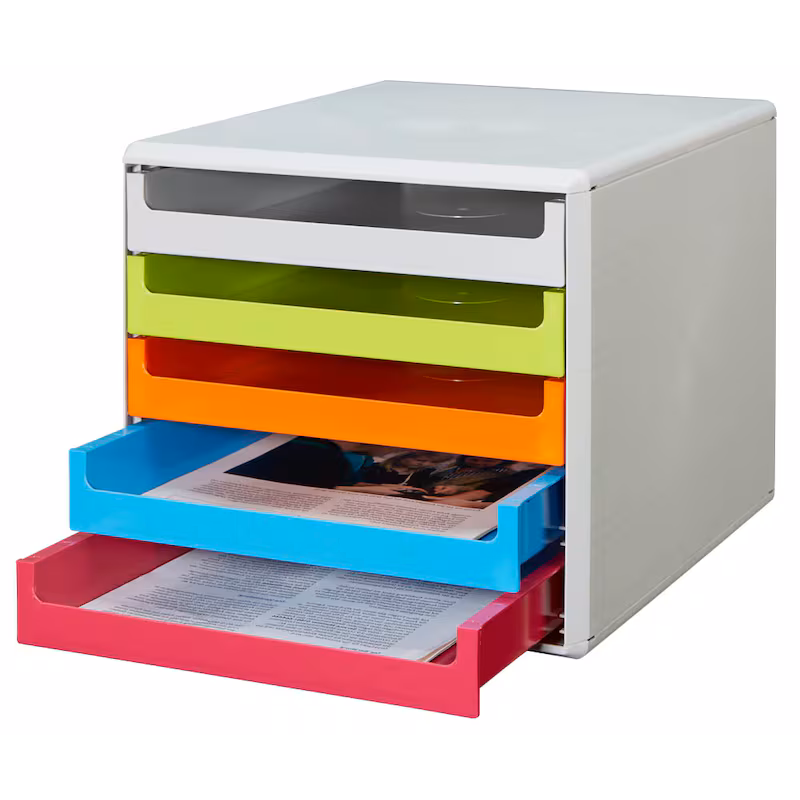 Schubladenbox grau, grün, orange, blau, rot 30050967, DIN A4 mit 5 Schubladen