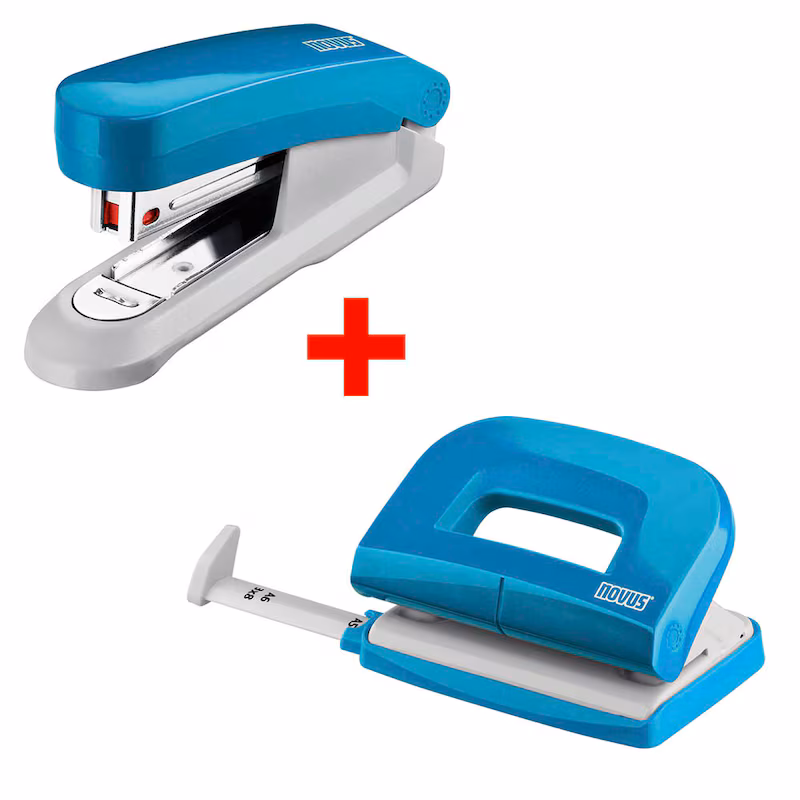 Das novus Locher und Heftgeräte Set E210/E15 in Petrol ist die günstige und praktische Lösung für den Einsatz im Büro, Haushalt und unterwegs.