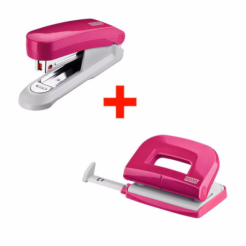 Das novus Locher und Heftgeräte Set E210/E15 in Pink ist die günstige und praktische Lösung für den Einsatz im Büro, Haushalt und unterwegs.