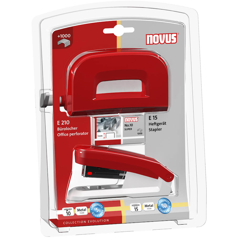 Das novus Locher und Heftgeräte Set E210/E15 in Rot ist die günstige und praktische Lösung für den Einsatz im Büro, Haushalt und unterwegs.