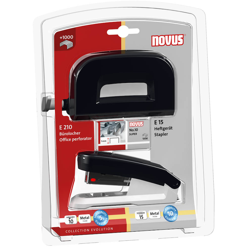 Das novus Locher und Heftgeräte Set E210/E15 in Schwarz ist die günstige und praktische Lösung für den Einsatz im Büro, Haushalt und unterwegs.