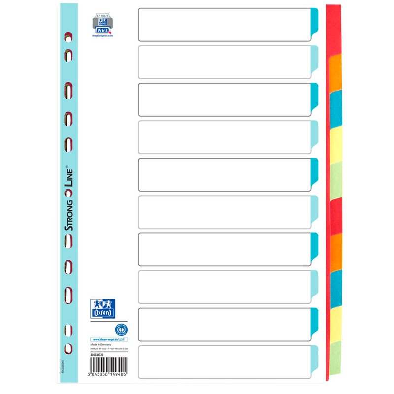 Für Ordnung im Ordner - die Blanko-Register von OXFORD. Mit diesem farbsortierten Blanko-Register im Vollformat kommt Ordnung und Übersicht in jeden Ordner.