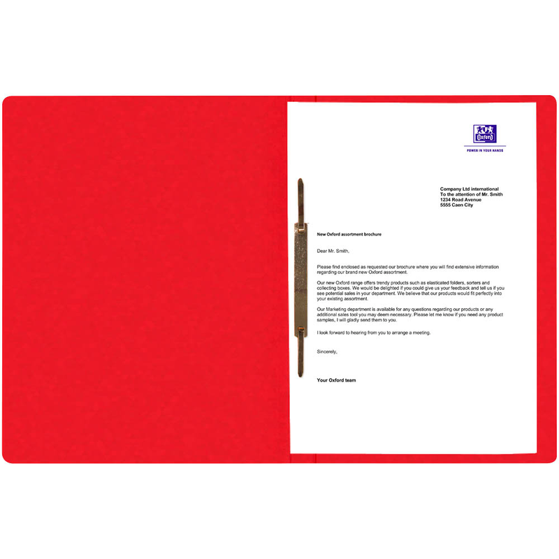 Der OXFORD Schnellhefter TOP FILE+ aus Karton in Rot bietet die perfekte Lösung für eine übersichtliche Dokumentenorganisation. Die robuste Hülle bewahrt Ihre Unterlagen sicher auf, während die einfache Heftmechanik ein schnelles Einfügen und Entnehmen ermöglicht.