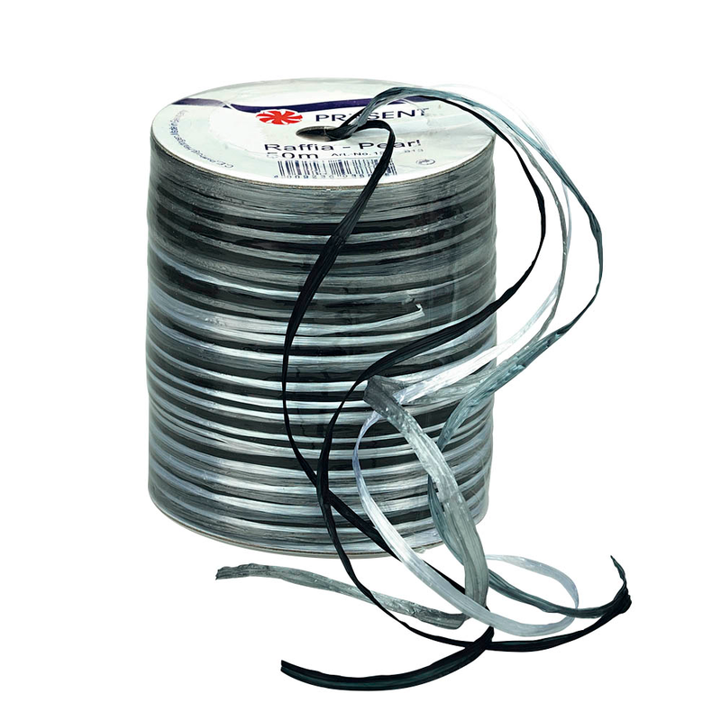Das schicke Raffia-Band ist glänzend und erstrahlt mehrfarbig in den Farben schwarz/grau/silber. Gleich 5 schicke Bänder können Sie aus der Spule ziehen und entweder einzeln oder gemeinsam nutzen.
