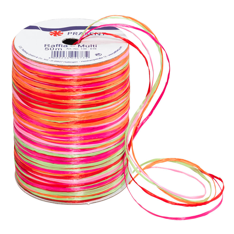 Das besondere Etwas für Ihre Geschenkverpackung - bei der fröhlichen Farbmischung des Raffia Geschenkbands von PRÄSENT macht das Ein- und Auspacken von Geschenken noch mehr Freude! Hiermit dekorieren und verzieren Sie Geschenke für Ihre Liebsten auf eine besonders schöne Art und Weise.