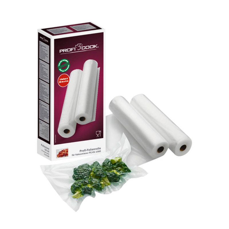 Die ProfiCook Vakuumierfolie PC-VK 1015 wurde speziell für den ProfiCook Vakuumierer PC-VK 1015 entwickelt. Im Lieferumfang sind 2 Rollen (je 28 cm × 6 m) enthalten.