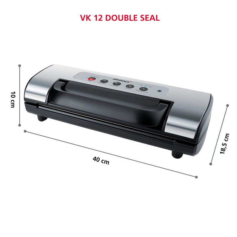 Mit einer Absauggeschwindigkeit von 12 l/Min und einem Unterdruck von 0,8 bar sorgt das Vakuumiergerät für optimale Ergebnisse bei jedem Vakuumiervorgang. Eine Besonderheit des DOUBLE SEAL Vakuumiergeräts ist die doppelte Schweißnaht, die für zusätzlichen Schutz vor Auslaufen sorgt, wenn feuchte Lebensmittel vakuumiert werden. Mit einer maximalen Schweißbreite von 30 cm eignet sich das Gerät sowohl für kleinere als auch größere Lebensmittelverpackungen. Das Steba VK 12 wird mit einem Vakuumierschlauch und einem Folienschneider geliefert, sodass Sie das Gerät sofort nach dem Auspacken verwenden können.
