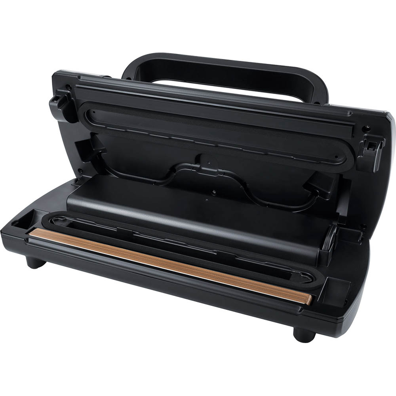 Das Vakuumiergerät ist dank der Automatikprogramme Absaugen und Versiegeln sowie der Stoppfunktion sehr einfach zu bedienen. Außerdem überzeugt das Gerät durch die komfortable Einhand-Bedienung mit extra Handgriff für ein leichtes Einrasten sowie durch die entnehmbare Vakuumkammer, was die Reinigung erleichtert.