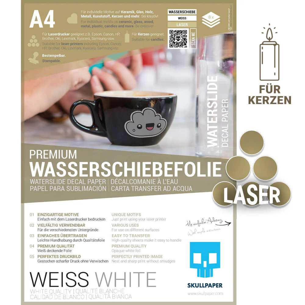 Du kannst mit der SKULLPAPER Wasserschiebefolie deine Decals selbst herstellen - kostengünstig und schnell! Die meisten Hersteller produzieren sie im Siebdruckverfahren lediglich in hohen Stückzahlen, so dass du nun die Möglichkeit hast kleine Einheiten und nach deinen Wünschen mit deinem Laserdrucker zu Hause (oder im Copyshop) selbst zu erstellen. Besonders eignet sich das Verfahren für Miniaturarbeiten, Modellbau aber auch für Dekore an Fahrrädern oder zum dekorativen Gestalten von Tassen, Gläser, Kerzen, Kunststoffbehälter usw. Deinen Ideen sind keine Grenzen gesetzt!